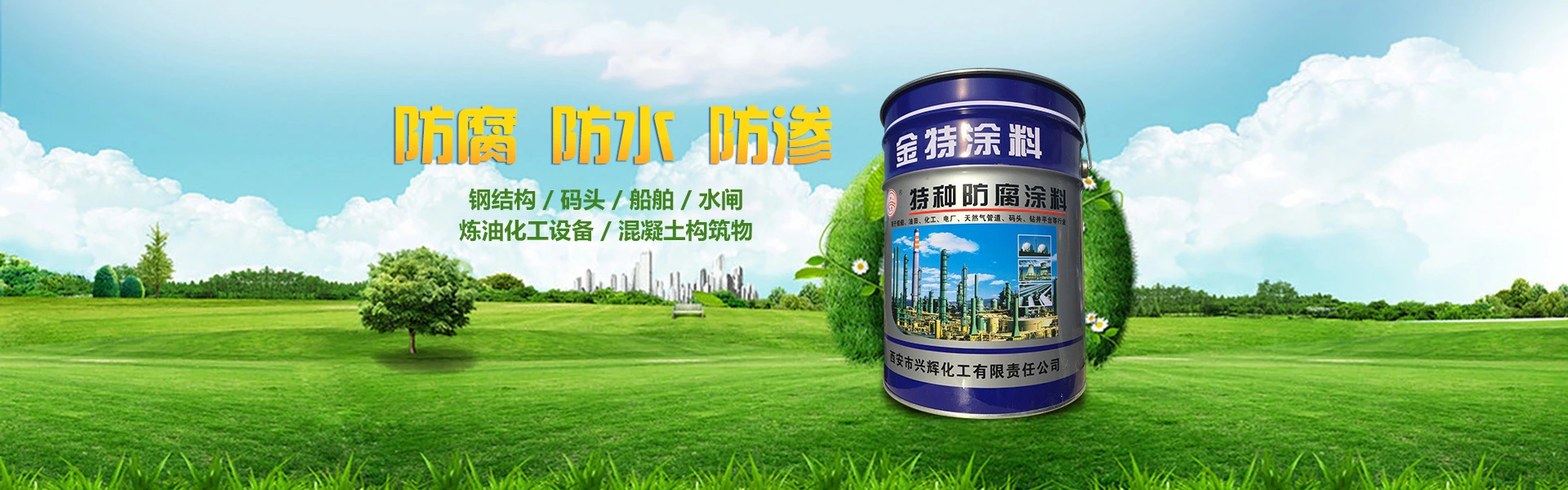 西安興輝化工有限公司,始建于2008年,廠址位于風景秀麗、交通便利的西安灃京工業(yè)園。優(yōu)越的地理位置和交通,奠定了興輝化工公司強勢發(fā)展的基礎,使“金特” 涂料更快捷的送到您的手中。公司精良的制漆設備造就了金特涂料的堅實基礎。公司生產(chǎn)研發(fā)銷售的環(huán)氧類防腐涂料、氯化橡膠類防腐涂料、聚氨酯類防腐涂料、丙烯酸系列防腐涂料、IPN8710互穿網(wǎng)絡系列防腐涂料、導靜電防腐涂料、有機硅耐高溫防腐涂料、氟碳漆、各色醇酸、硝基系列涂料等近百個種類。公司產(chǎn)品廣泛應用手自來水、污水處理、天然氣管道等市政工程及發(fā)電廠、化工廠的機城設備、油田、貯罐、碼頭、船舶、管道設計等防腐。公司... 【查看詳細 >>】
